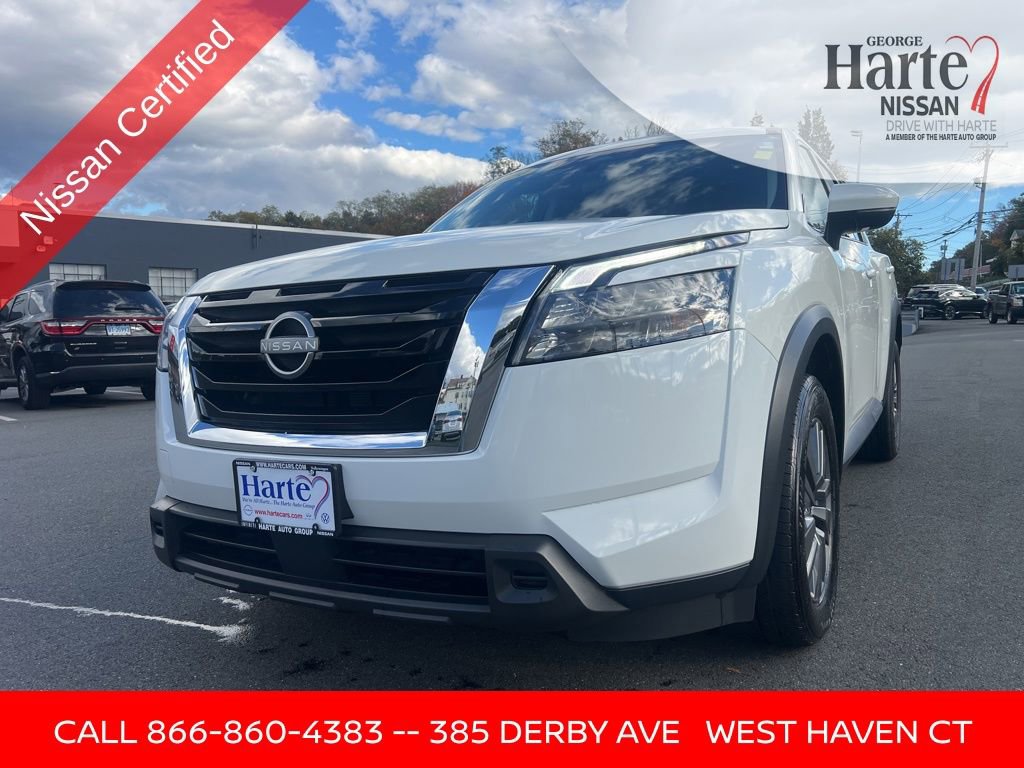 Turn heads wherever you go in this striking Glacier White 2024 Nissan Pathfinder SV. Designed for families, adventurers, and anyone who refuses to compromise, this SUV blends roomy comfort, cutting-edge technology, and rugged capability in One sleek, powerful package. With 3rd-Row seating, everyone rides in style, and every journey becomes a memorable experience.Performance & Capability:Robust 3.5L V6 engine paired with a 9-Speed Automatic transmission for smooth, confident driving4WD ensures traction and control in any conditionsAdvanced handling features like four-wheel independent suspension, electronic stability control, traction control, and speed-sensing steering for superior confidence on every roadComfort & Convenience:Heated front bucket seats and a power driver seat make every drive luxuriousReclining 3rd-Row seating provides flexible space for family and cargoFully automatic headlights and auto high-beams make night driving effortlessTechnology & Entertainment:NissanConnect featuring Apple CarPlay and Android Auto keeps you connected and entertained6 premium speakers for rich, immersive audioSteering wheel-mounted audio controls for seamless convenienceSafety & Security:Back-up camera and rear parking sensors keep every maneuver safeBrake assist, electronic stability control, and traction control provide peace of mind in all conditionsRemote keyless entry for quick and secure accessWheels & Exterior:Bold 18 x 8J painted alloy wheels that perfectly complement Glacier White exteriorAggressive styling that commands attention wherever you goCertification Program: HARTE CERTIFIED PLUSFull Powertrain Coverage: 10 Years / 100,000 Miles from original in-service dateRoadside Assistance: Up to $150 per incident, including towing, flat tire service, lock-out assistance, and moreRental Car Benefits: Coverage while your vehicle undergoes a covered repairTrip Interruption: Up to $150/day for meals & lodging if repair occurs more than 100 miles from homeFuel Economy: 21/27 City/Highway MPGpowerful, yet efficientThis Pathfinder isnt just a vehicleits a statement. Dont waitopportunities like this move fast.Call Today @ 203-392-2131 to Schedule Your Test Drive and Drive Home with Confidence.